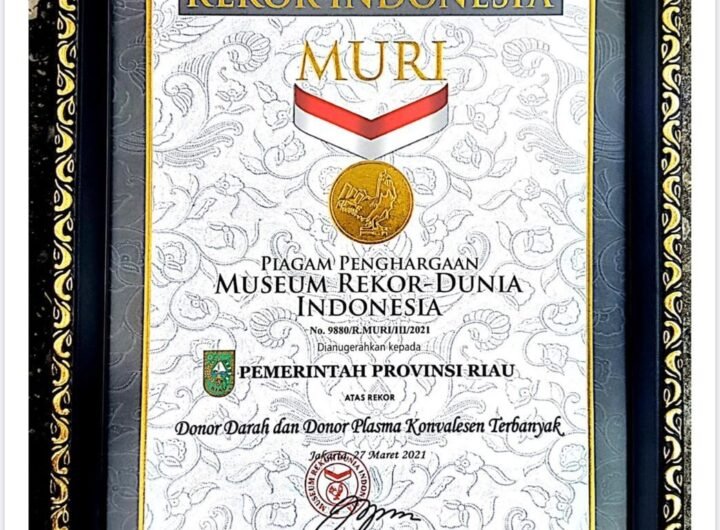 PEKANBARU (perepat.com)-Pemerintah Provinsi (Pemprov) Riau dianugerahi piagam oleh Museum Rekor Indonesia (MURI) dalam kategori donor darah dan...