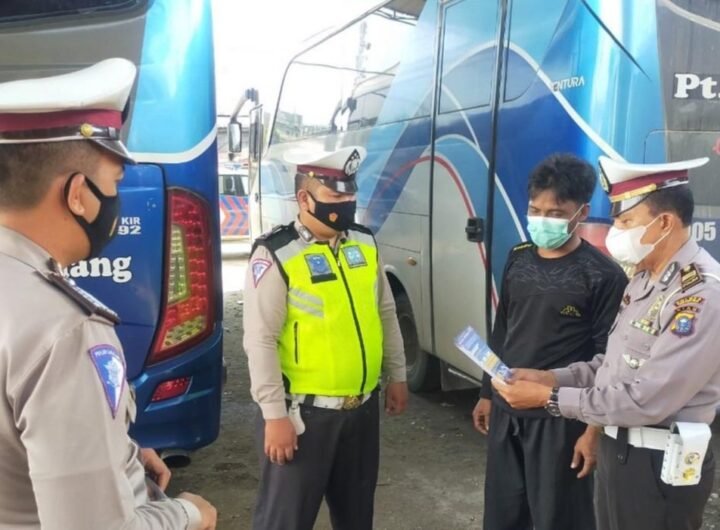Satlantas Polres Inhil mensosialisasikan dan menyebarkan leaflet tentang himbauan larangan mudik lebaran 2021 ke PO Angkutan Umum....
