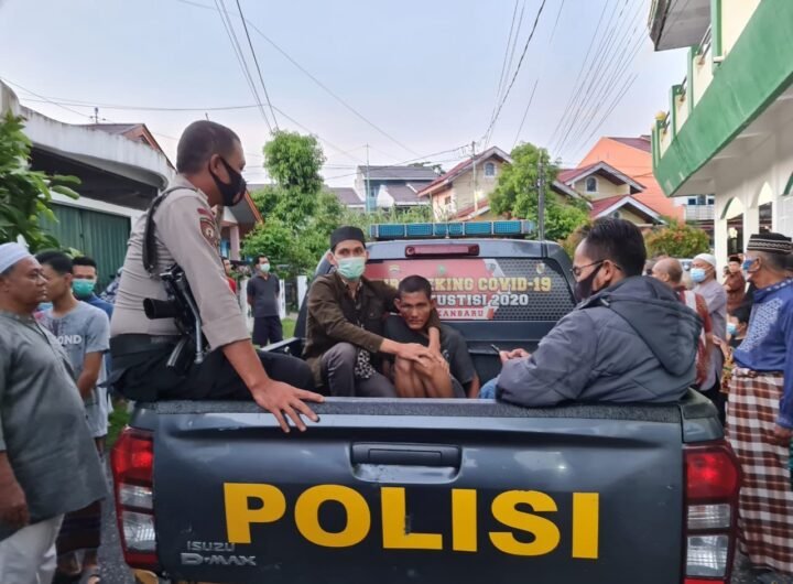 Pelaku penganiayaan terhadap imam Sholat Subuh di Masjid Baitul Ar’sy diamankan warga dan aparat kepolisian.(foto istimewa) PEKANBARU...