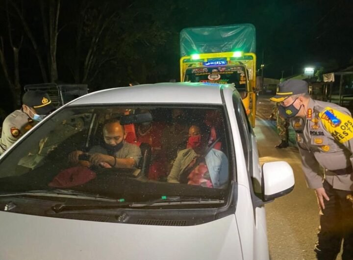 Personel Polresta Pekanbaru memeriksa kendaraan yang masuk ke Kota Pekanbaru di posko penyekatan arus mudik. PEKANBARU (perepat.com)-Guna...
