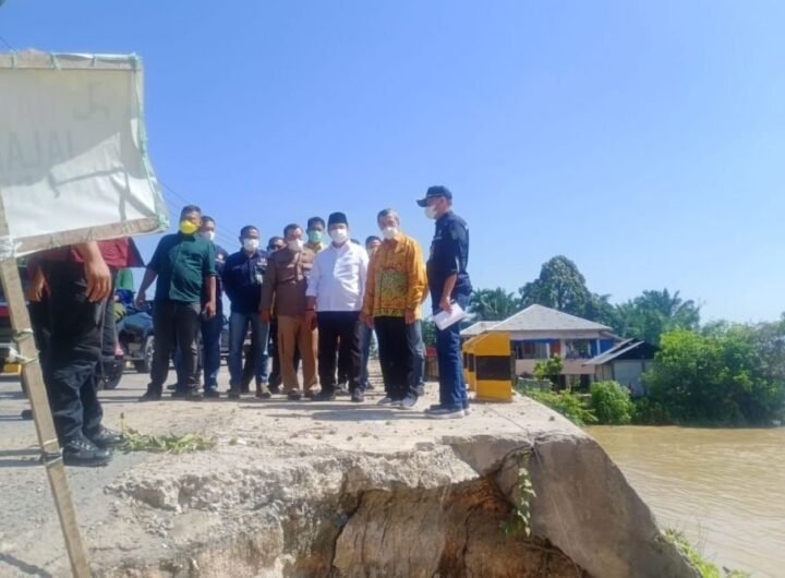 Gubernur Riau, Drs H Syamsuar MSi meninjau Jalan lintas Rengat-Tembilahan tepatnya di Kuala Cenaku, Kabupaten Inhu yang...