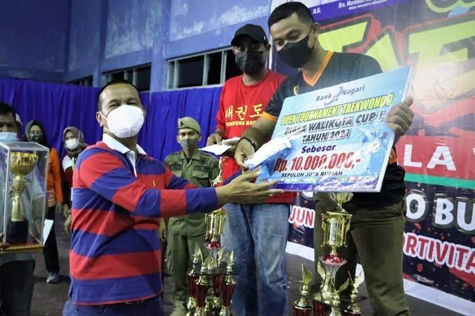 Walikota Pariaman, Genius Umar menyerahkan piala kepada kontingen Riau yang berhasil meraih juara umum.(foto istimewa) PARIAMAN (perepat.com)-Kontingen...