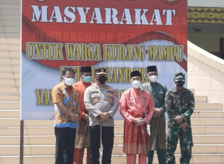 Gubri didampingi Danrem 031/WB, Kapolda Riau, Ketum MKA dan Ketum DPH LAM Riau saat meresmikan Dapur Umum.(foto:...