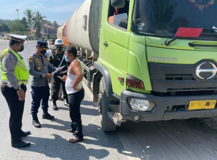 Razia kendaraan angkutan barang termasuk truk Over Dimensi Over Load (ODOL) di lintas barat, tepatnya daerah Petapahan,...