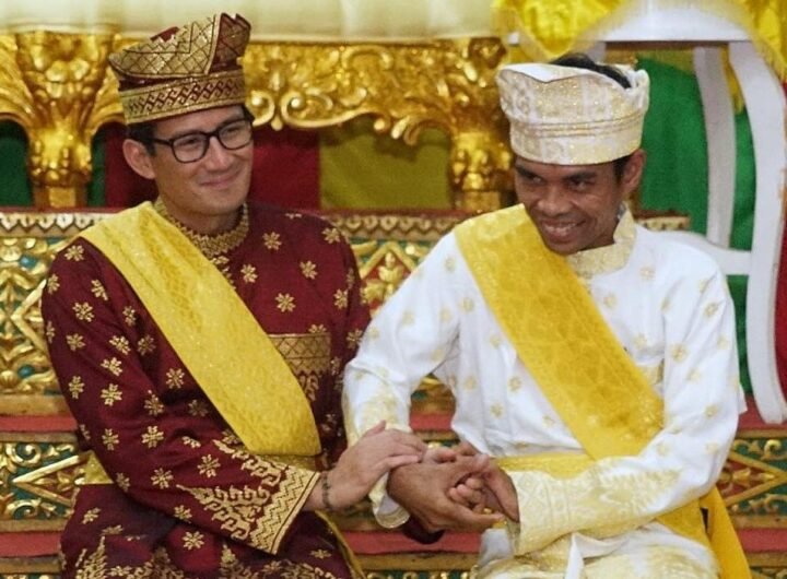 Sandiaga Uno saat hendak ditepuktepungtawari LAM Riau didampingi Ustad Abdul Somad, beberapa waktu lalu.(foto lam riau) PEKANBARU...