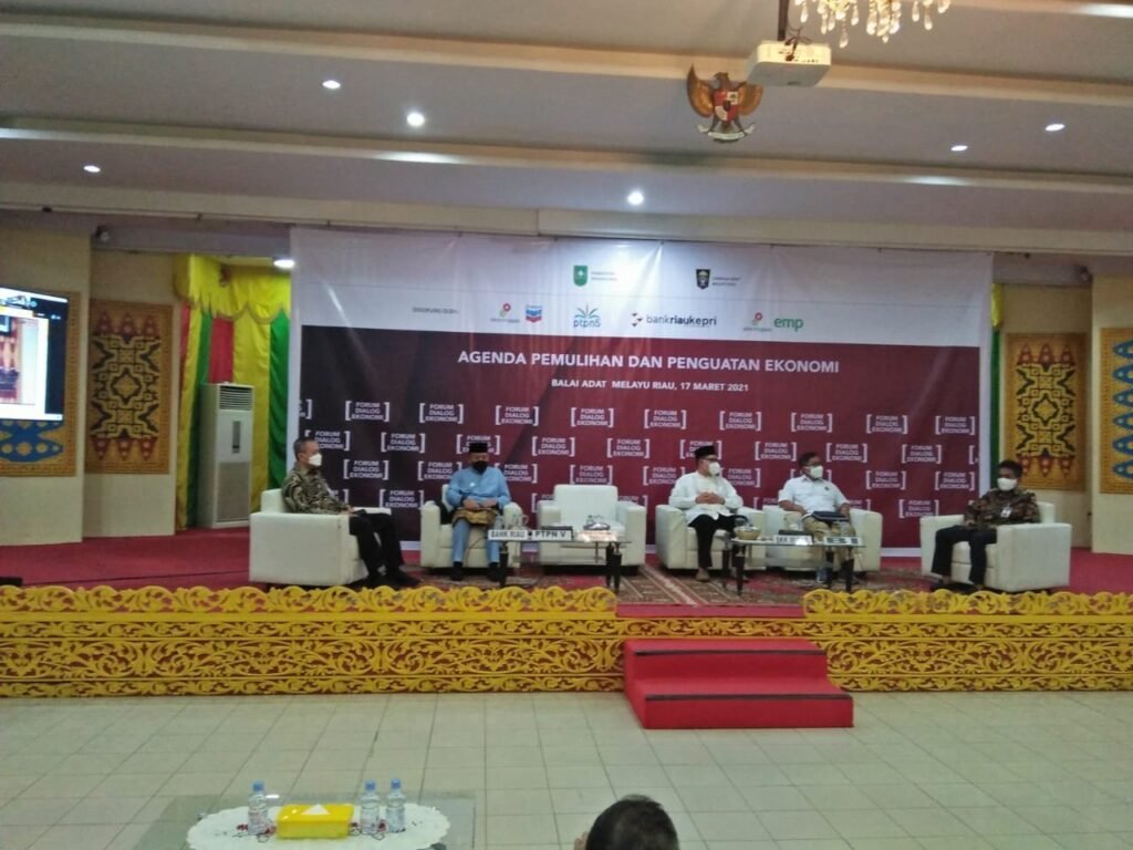 Ketua Umum MKA LAM Riau, YB Datuk Seri H Al Azhar (berbaju putih) pada majelis perbincangan bertema Agenda Pemulihan dan Penguatan Ekonomi.(foto perepat.com)
