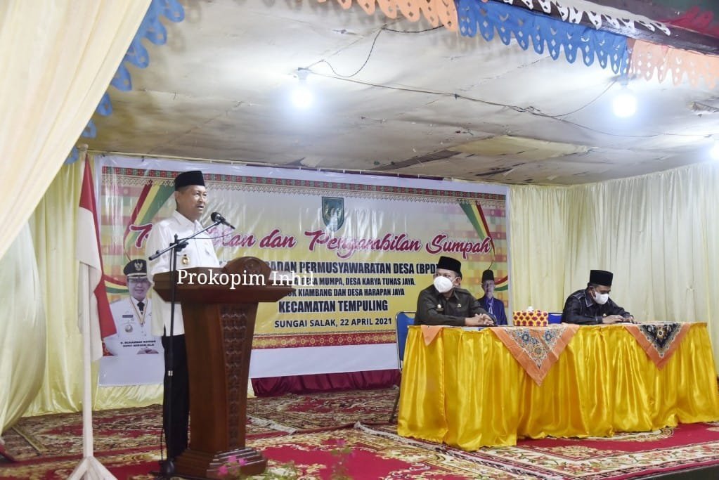 TEMBILAHAN (perepat.com)-Wakil Bupati (Wabup) Indragiri Hilir (Inhil), H Syamsuddin Uti melantik lima pengurus Badan Permusyawaratan Desa (BPD) di Kecamatan Tempuling, Kamis (22/4/2021). Lima BPD tersebut adalah BPD Teluk Jira, Desa Mumpa, Desa Tunas Jaya, Desa Teluk Kiambang dan Desa Harapan Jaya.