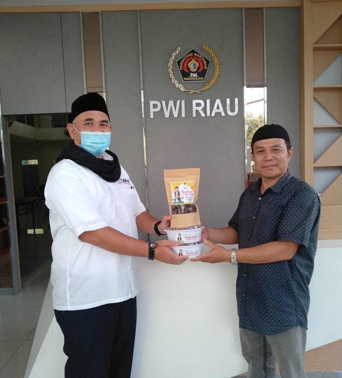 PEKANBARU (perepat.com)-Ketua Persatuan Wartawan Indonesia (PWI) Provinsi Riau, H Zulmansyah Sekedang melalui Program PWI Riau Peduli secara simbolis menyerahkan paket Sedekah 1 Ton Kurma kepada penanggungjawab distribusi kurma PWI Riau Peduli, HM Ikhwan Lc MA di Kantor PWI Riau Jalan Arifin Achmad Kota Pekanbaru, Selasa 8 Ramadhan 1442 H/(20/4/2021).