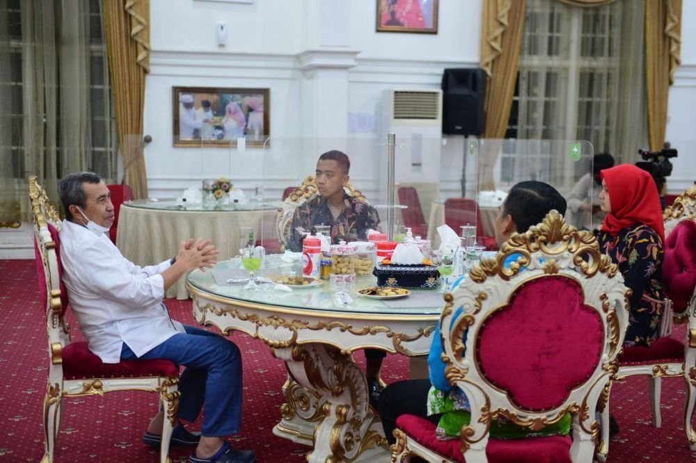 Gubernur Riau menerima kunjungan dua utusan Paskibraka Nasional Provinsi Riau Tahun 2021 di Kediaman Gubernur Riau, Jumat Malam (23/7/2021).