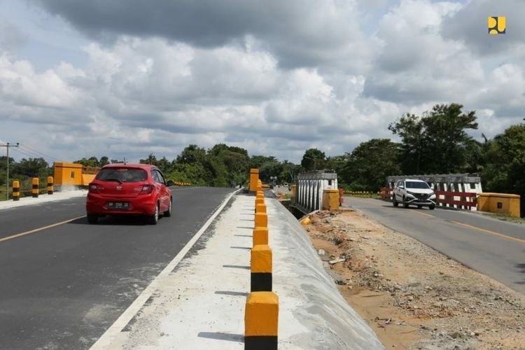 Satu dari tiga jembatan duplikat yang dibangun di ruas jalan nasional Pekanbaru-Bangkinang telah rampung pengerjaannya.(foto dok Kemen PUPR)
