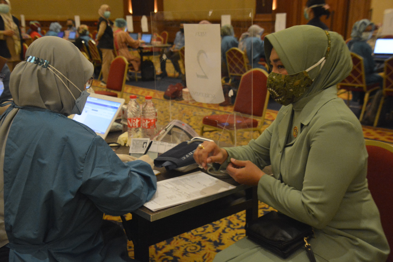 Bersama para pelayan publik dan Lansia, istri orang nomor satu di jajaran Korem 061/SK ini terlebih dahulu harus mengikuti prosedur yang telah ditetapkan untuk bisa divaksin, hal tersebut tentunya untuk mengetahui apakah seseorang layak atau tidak untuk dapat di vaksin, karena jika kondisi tubuh seseorang sedang dalam tidak baik atau memiliki penyakit bawaan dapat dipastikan itu tidak bisa untuk divaksin, karena dapat beresiko fatal.