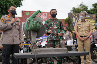 Oleh karena itu pihak kepolisian dengan mendapat support dari unsur TNI telah melakukan razia knalpot diberbagai Wilayah.