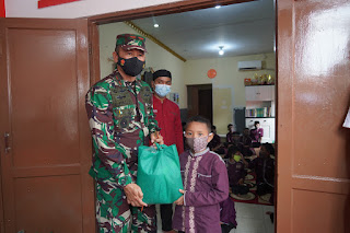 Usai memberikan arahan, Danrem menyerahkan 50 paket sembako, 50 Hand sanitizer, 150 Masker dan 50 santunan tali asih untuk anak anak yayasan.