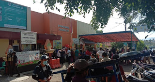 | Suasana kerumunan di depan Puskesmas Cirimekar Cibinong |