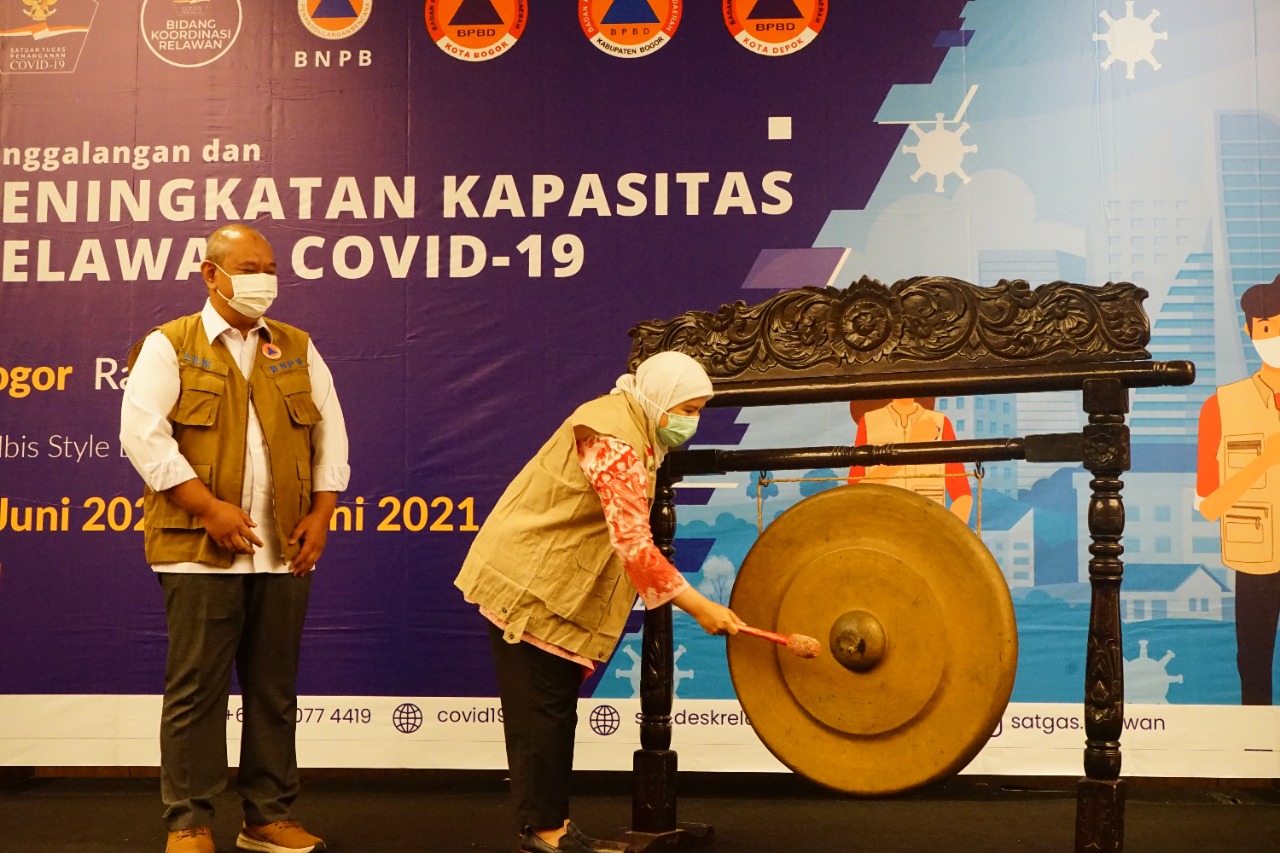 Paparan.net | Bogor, 7 Juni 2021 – Bidang Koordinasi Relawan Satuan Tugas COVID-19 (BKR Satgas COVID-19) menggelar Program Penggalangan dan Peningkatan Kapasitas Relawan COVID-19 untuk 1000 relawan di Wilayah Bogor Raya. Program ini berlangsung dari tanggal 4 hingga 11 Juni di Hotel Ibis Style Bogor Raya, Kabupaten Bogor, Jawa Barat. Sebagai bentuk persetujuan dan dukungan, Program ini dihadiri serta dibuka secara langsung dalam Opening Ceremony oleh Sekretariat Utama Badan Nasional Penanggulangan Bencana (BNPB) Lilik Kurniawan, Wakil Ketua Komisi VIII DPR RI Diah Pitaloka, Kepala Pelaksana Badan Penanggulangan Bencana Daerah (BPBD) Jawa Barat Dani Ramdani, Pejabat Perencanaan Madya Deputi Pencegahan BNPB Pangarso Suryotomo, Kepala Pelaksana BPBD Kabupaten Bogor Bapak Yani Hassan, Kepala Pelaksana BPBD Kota Bogor Teofilo Patrocinio Freitas, Kepala Sub Bidang Pelatihan BKR Satgas COVID-19 Prasetyo Nurhadjanto (7/6).